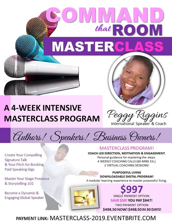 Peggy Riggins is a registered pharmacist, communications consultant and organizer of the Command That Room Workshop (Speak to Self) since 2016.